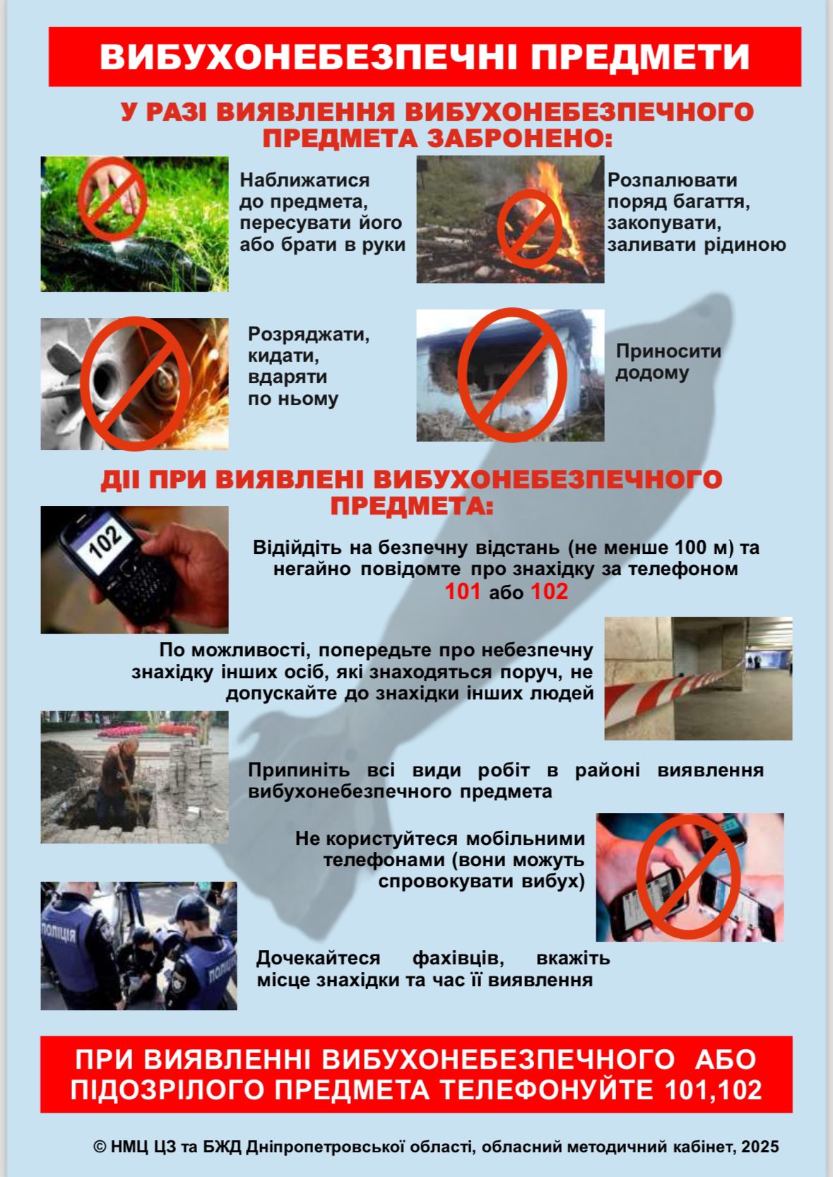 📞 Одразу телефонуйте 101 або 102, якщо побачилипідозрілий предмет.