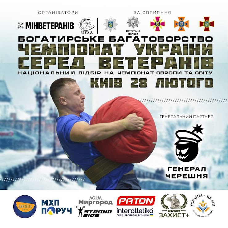 🔹Запрошуємо ветеранів та ветеранок взяти участь у ІІ чемпіонаті України з богатирського багатоборства, який відбудеться 28 лютого у місті Київ.
