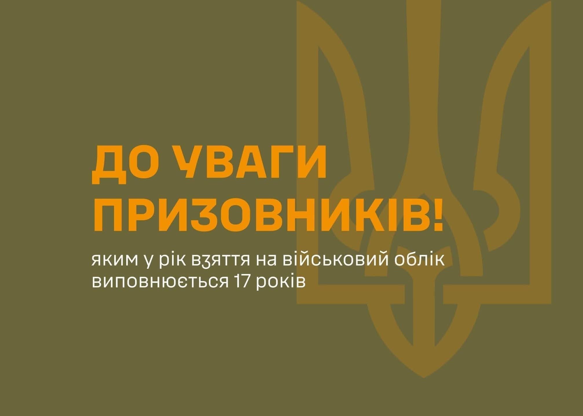 Відповідно до статті 14 Закону України «Про військовий обов’язок і військову службу» (з урахуванням змін), у період з 1 січня по 31 липня 2026 року на військовий облік призовників підлягають взяттю громадяни України чоловічої статі, яким у році взяття на облік виповнюється 17 років. Дані про них вносяться до Єдиного державного реєстру призовників, військовозобов’язаних та резервістів одним із таких способів: