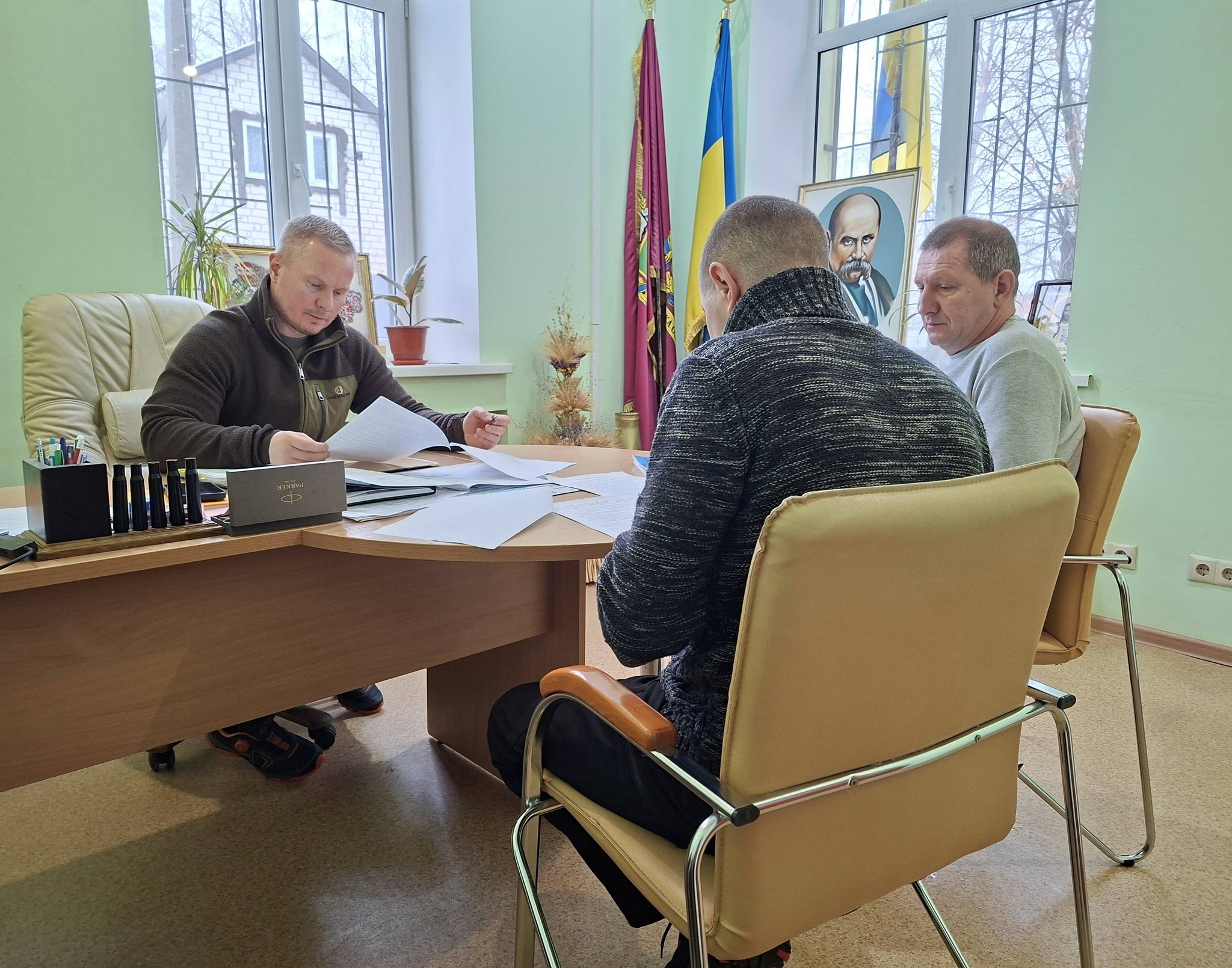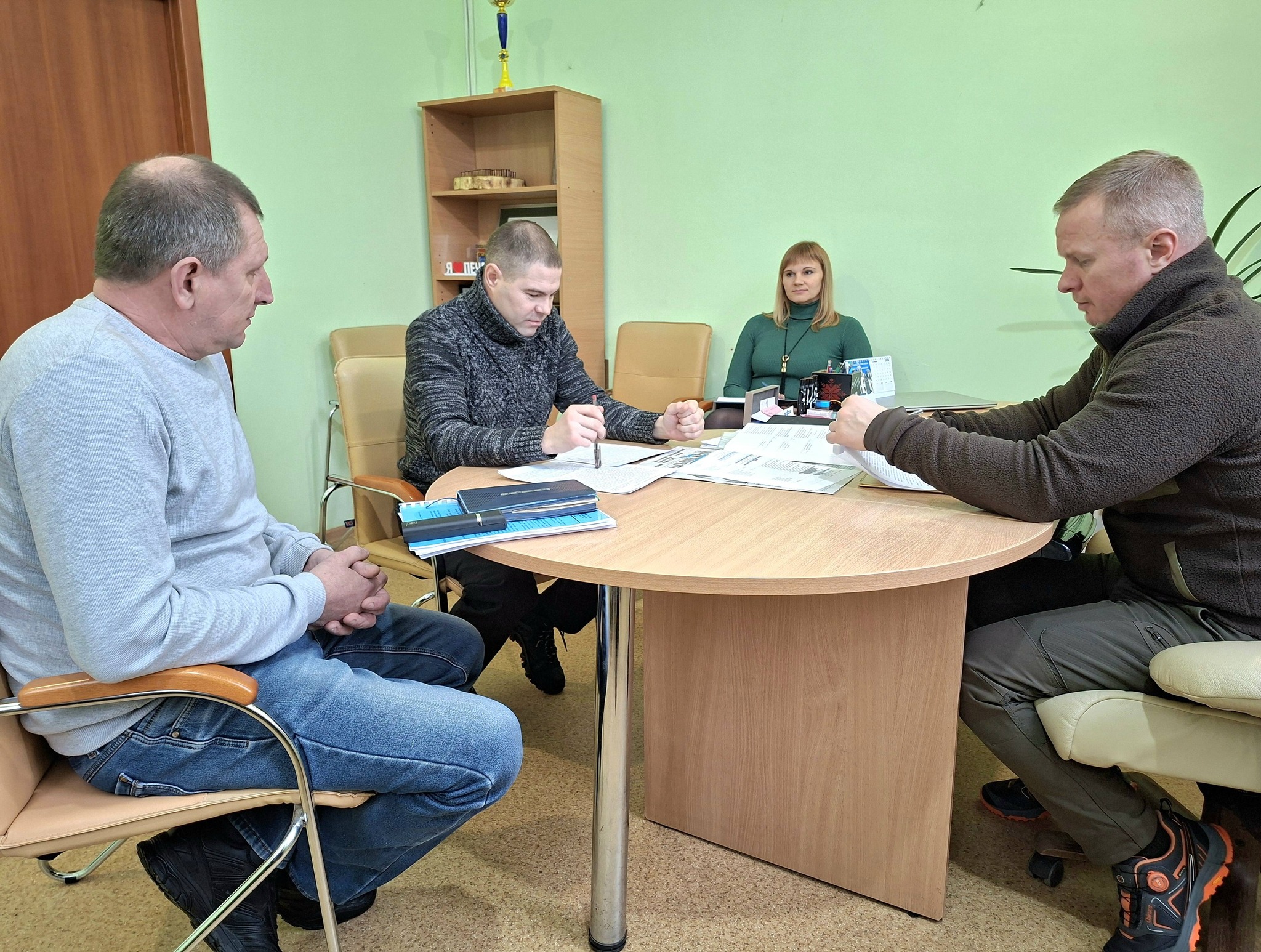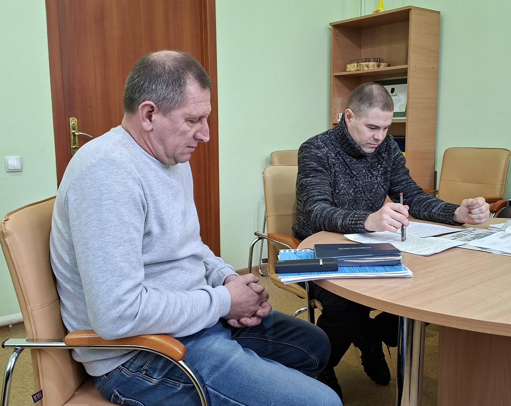 ✔️ Начальник СВА Олександр Гусаров заслухав звіт про роботу земельного відділу Печенізької селищної ради. Звітували начальник земельного відділу Максим Мариненко та спеціаліст 1 категорії Володимир Змієвський.