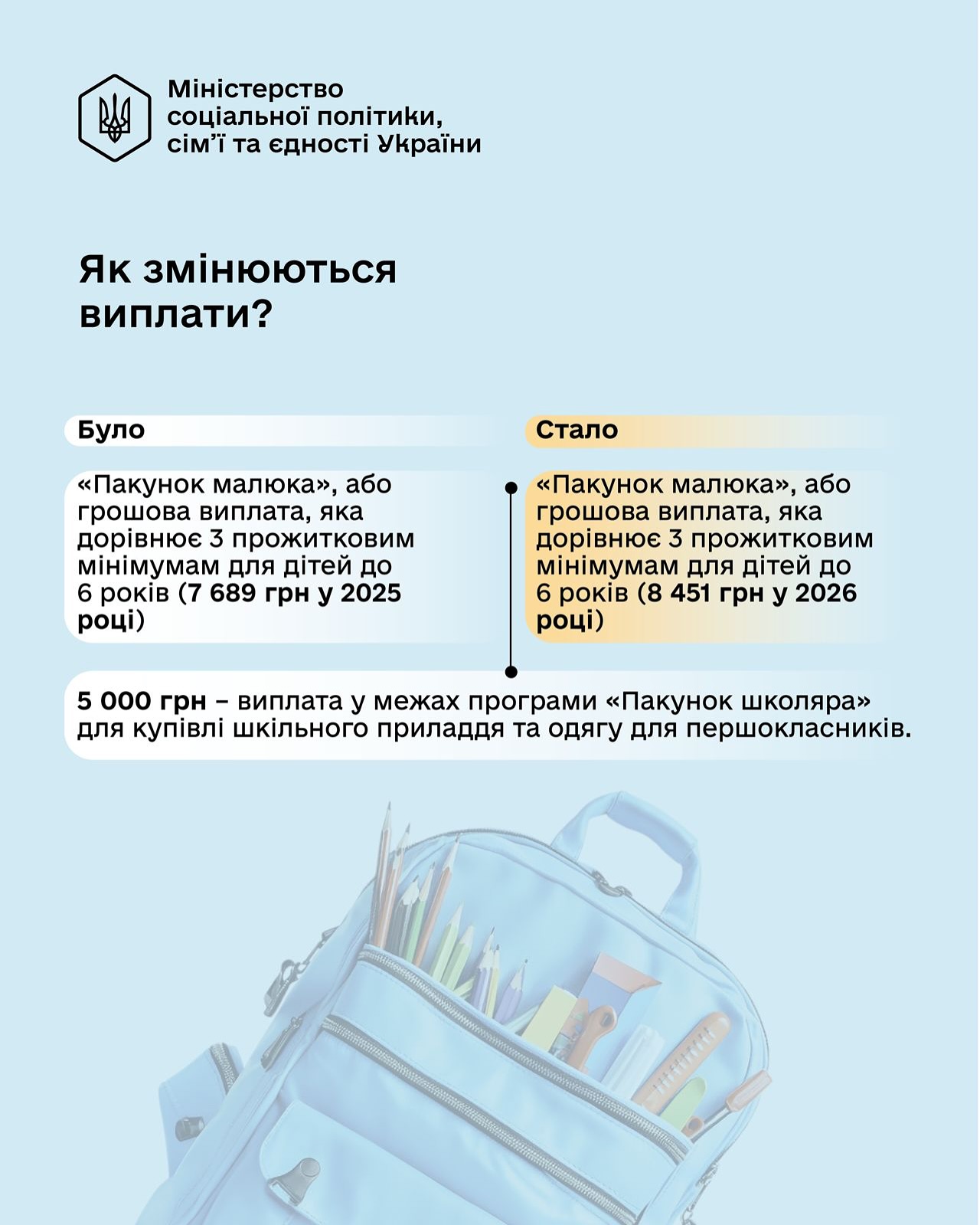 Про те, які нові виплати та програми підтримки діятимуть для сімей з 2026 року, — детальніше дивіться в нашій інфографіці.