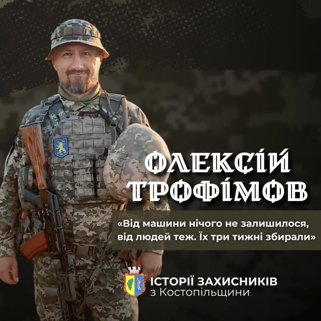До лютого 2022-го Олексій Трофімов працював зварювальником опалювальних котлів, перебував у резерві батальйону ТРО. На війну вирушив одразу, 24 лютого 2022. Спочатку будував укріплення, а потім були Торецьк, пробита наскрізь нога, жахіття біля Очеретино і важке поранення, яке, можливо, врятувало йому життя.