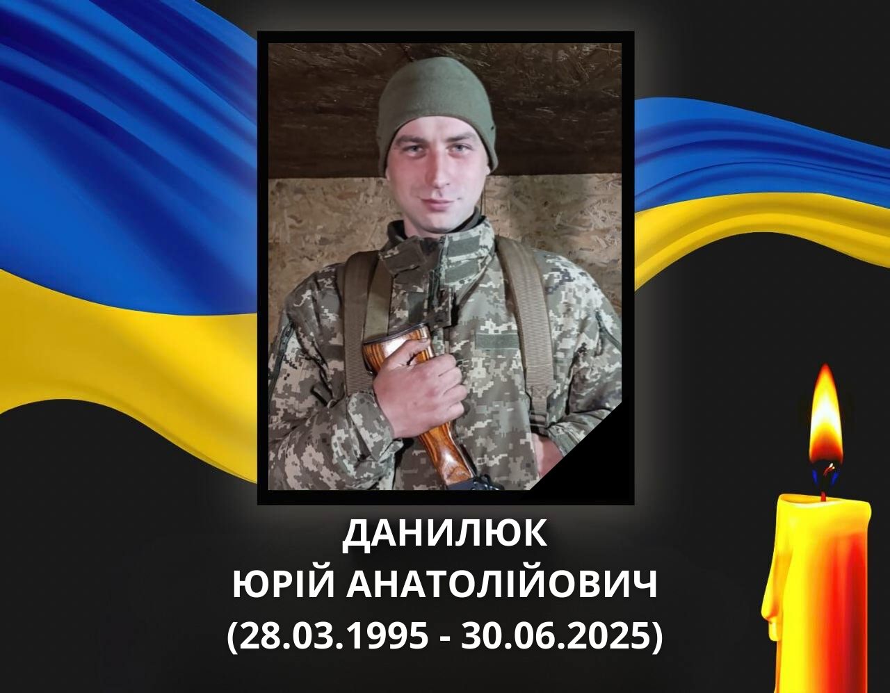 Війна забрала молоде життя Захисника України, ковельчанина Данилюка Юрія Анатолійовича, солдата, кулеметника 1-го механізованого відділення 2-го механізованого батальйону військової частини А5002.