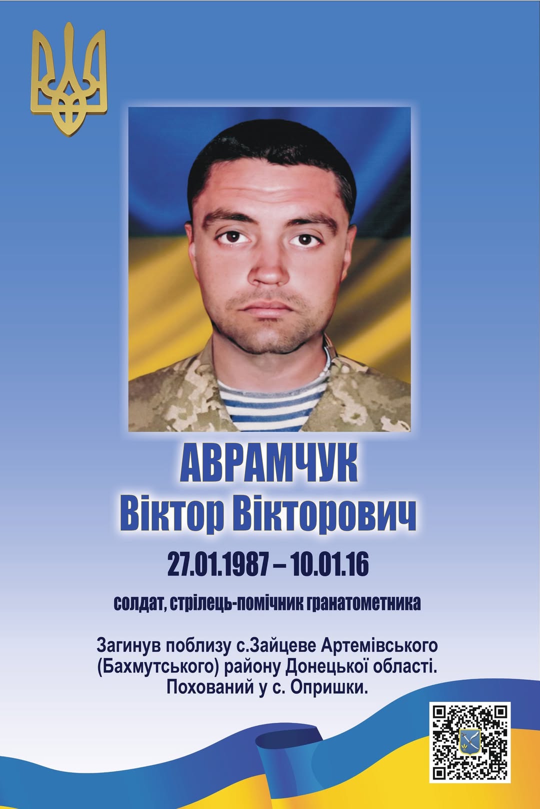 Віктор Вікторович Аврамчук віддав найдорожче – своє життя – за Україну, за нашу свободу, за право жити під мирним небом.