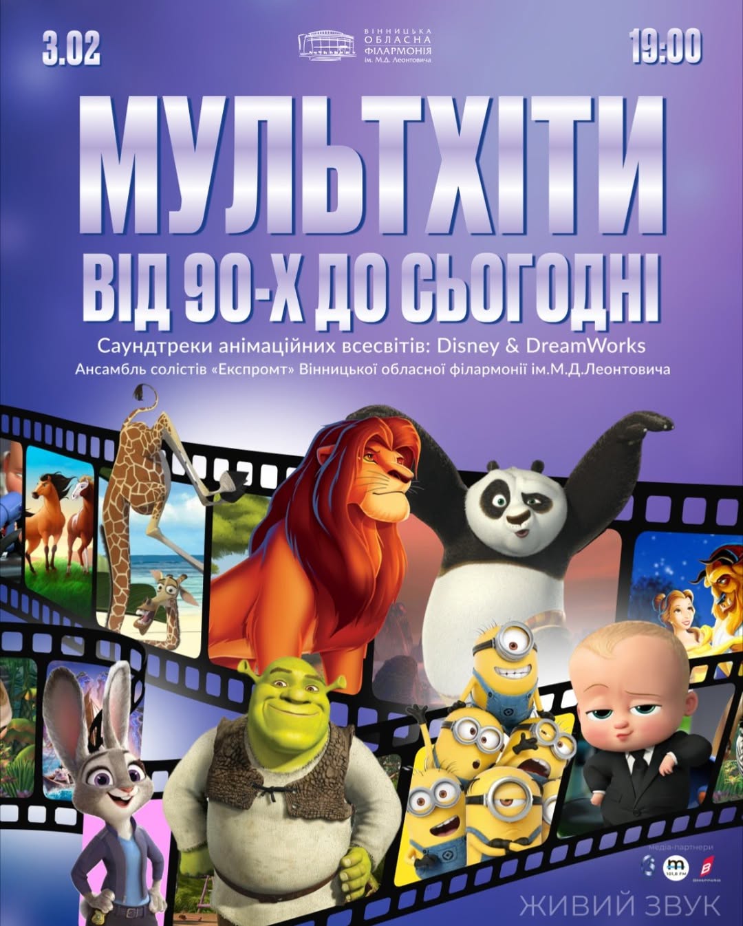 Вінницька обласна філармонія запрошує 3 лютого о 19.00 на концерт «МультХіти від 90-х до сьогодні».