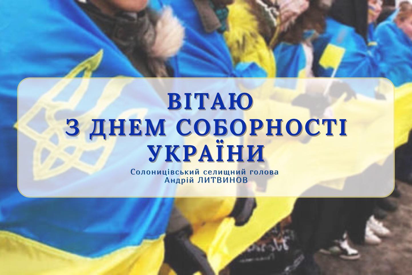 Вітаю жителів громади з Днем Соборності України — святом єдності, сили та незламності нашого народу!