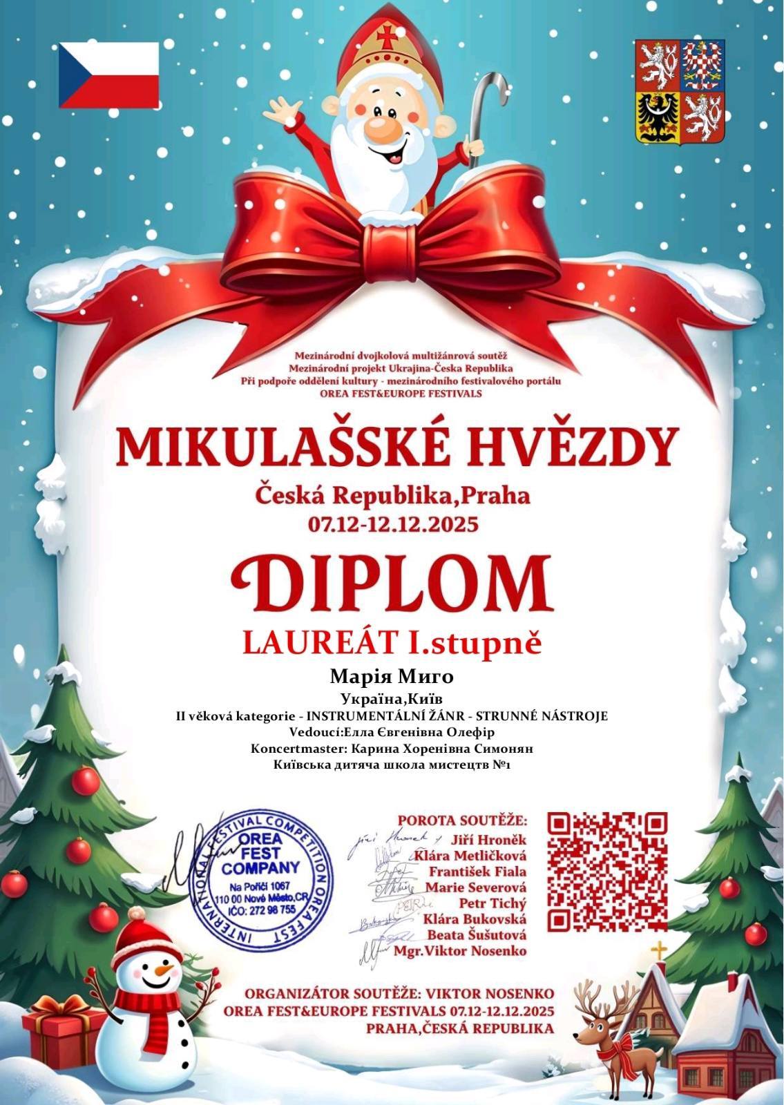 Вітаємо Миго Марію з Київської дитячої школи мистецтв № 1, її викладачку Еллу Олефір та концертмейстерку Карину Симонян із перемогами! ✨🎶