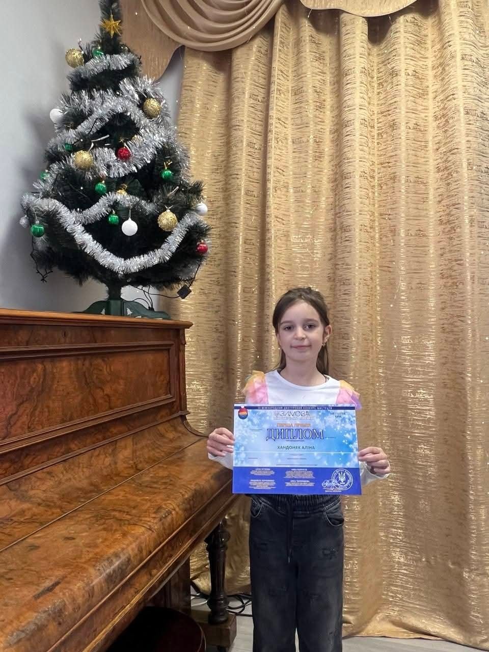 Вітаємо Хандоняк Аліну, ученицю Доброгостівської ДМШ, з отриманням диплома першої премії на ІІІ Міжнародному двотуровому конкурсі мистецтв “ЗИМОВА МИСТЕЦЬКА ПРЕМІЯ”. Бажаємо успіхів у навчанні та подальших перемог.