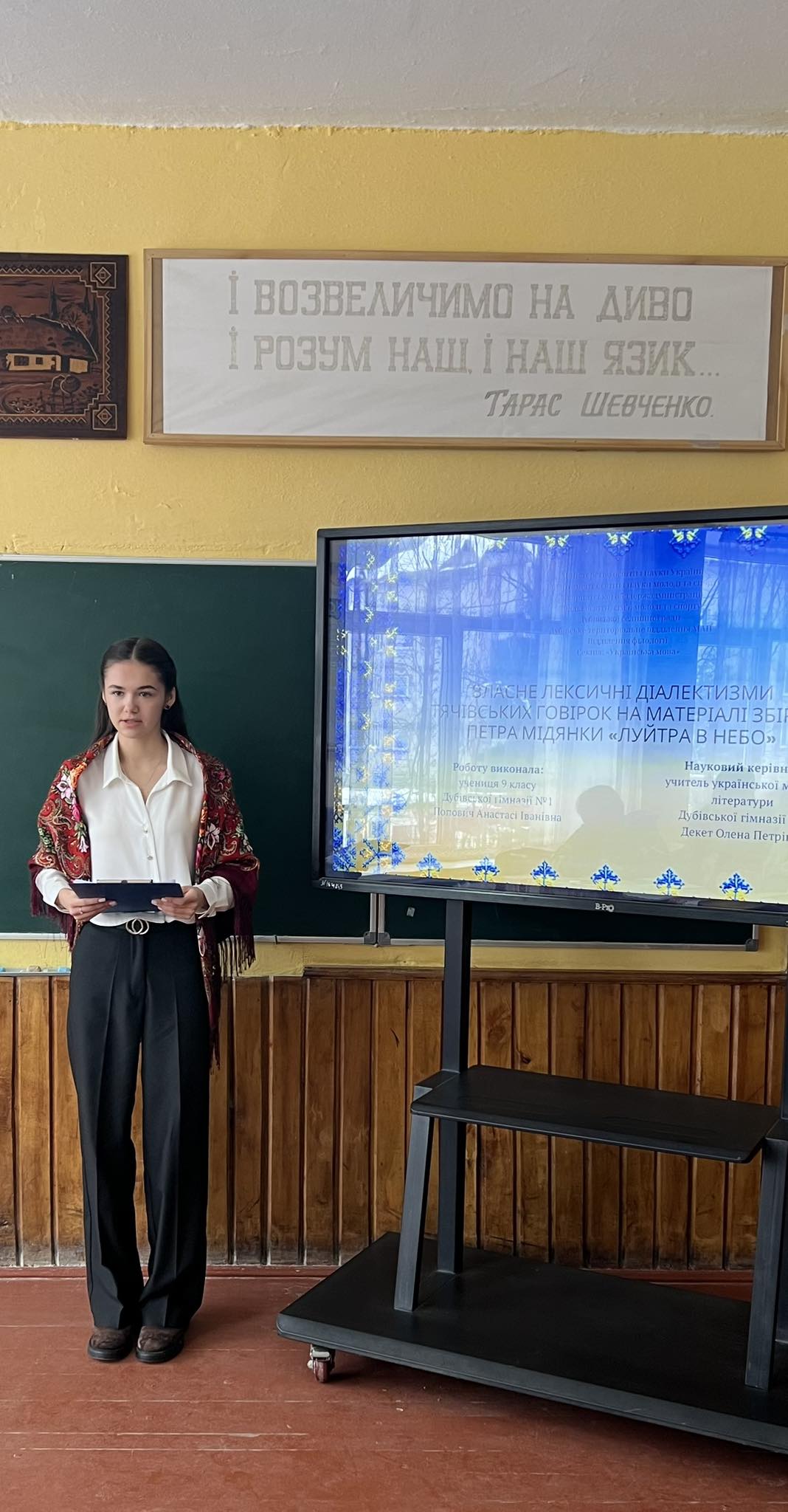 Ученицю 9-Б класу Попович Анастасію, яка успішно захистила науково-дослідницьку роботу на конкурсі МАН та посіла І місце.