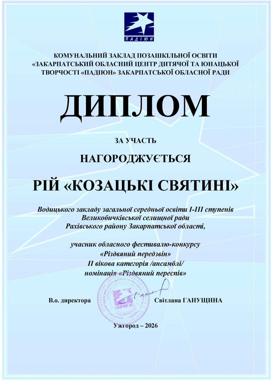 колектив «Верхньоводянські колядники» Верхньоводянського закладу загальної середньої освіти І-ІІІ ступенів №1;