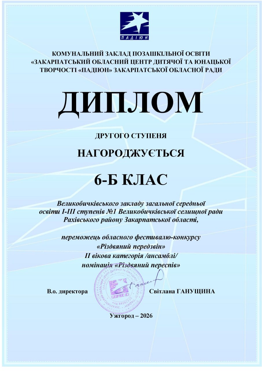 ІІ місце – 6-Б клас Великобичківського закладу загальної середньої освіти І-ІІІ ступенів №1;
