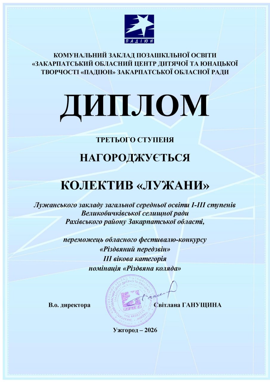 ІІІ місце – колектив «Лужани» Лужанського закладу загальної середньої освіти І-ІІІ ступенів;