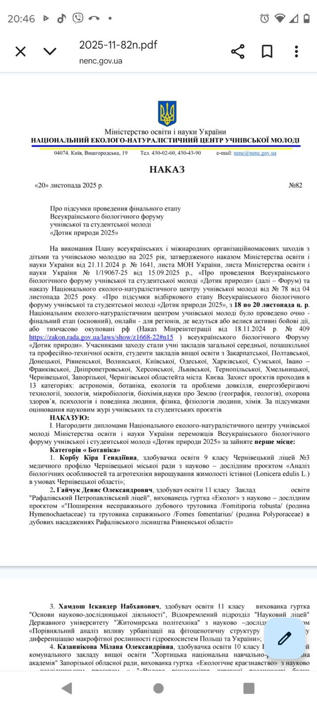 👏🏻Вітаємо учня Чижиківський ЗЗСО І-ІІІ ступенів Івана Тютька, який представив свій науково-дослідницький проєкт «Нестандартна відновлювальна паливна сировина» на Всеукраїнському біологічному форумі «Дотик природи 2025» і посів III місце🥉в номінації «Енергозбережувальні технології».