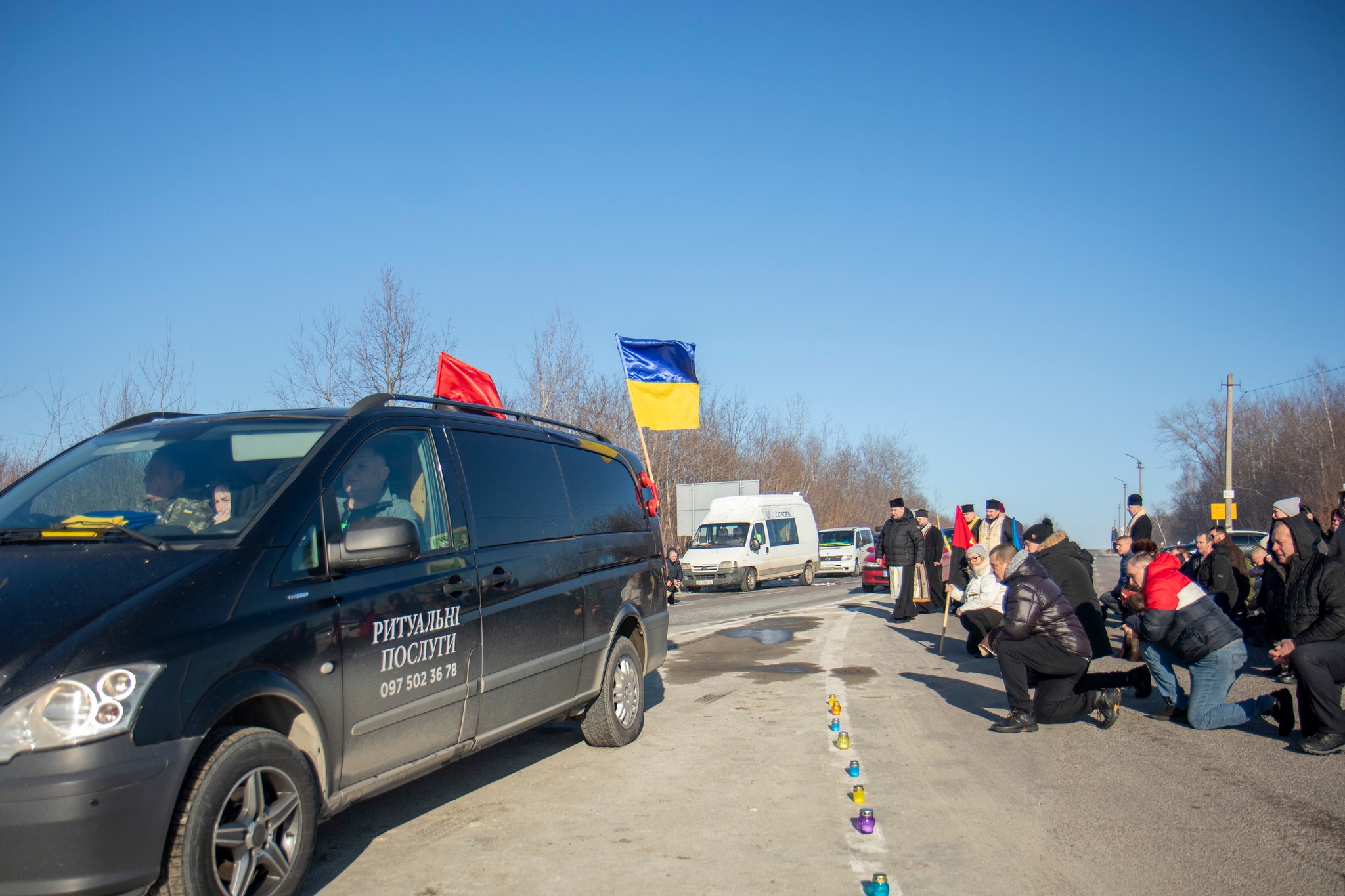 Зустрічали полеглого Захисника на Перехресті Героїв: скорботна родина, представники влади, духовенство, побратими, волонтери, небайдужі мешканці.