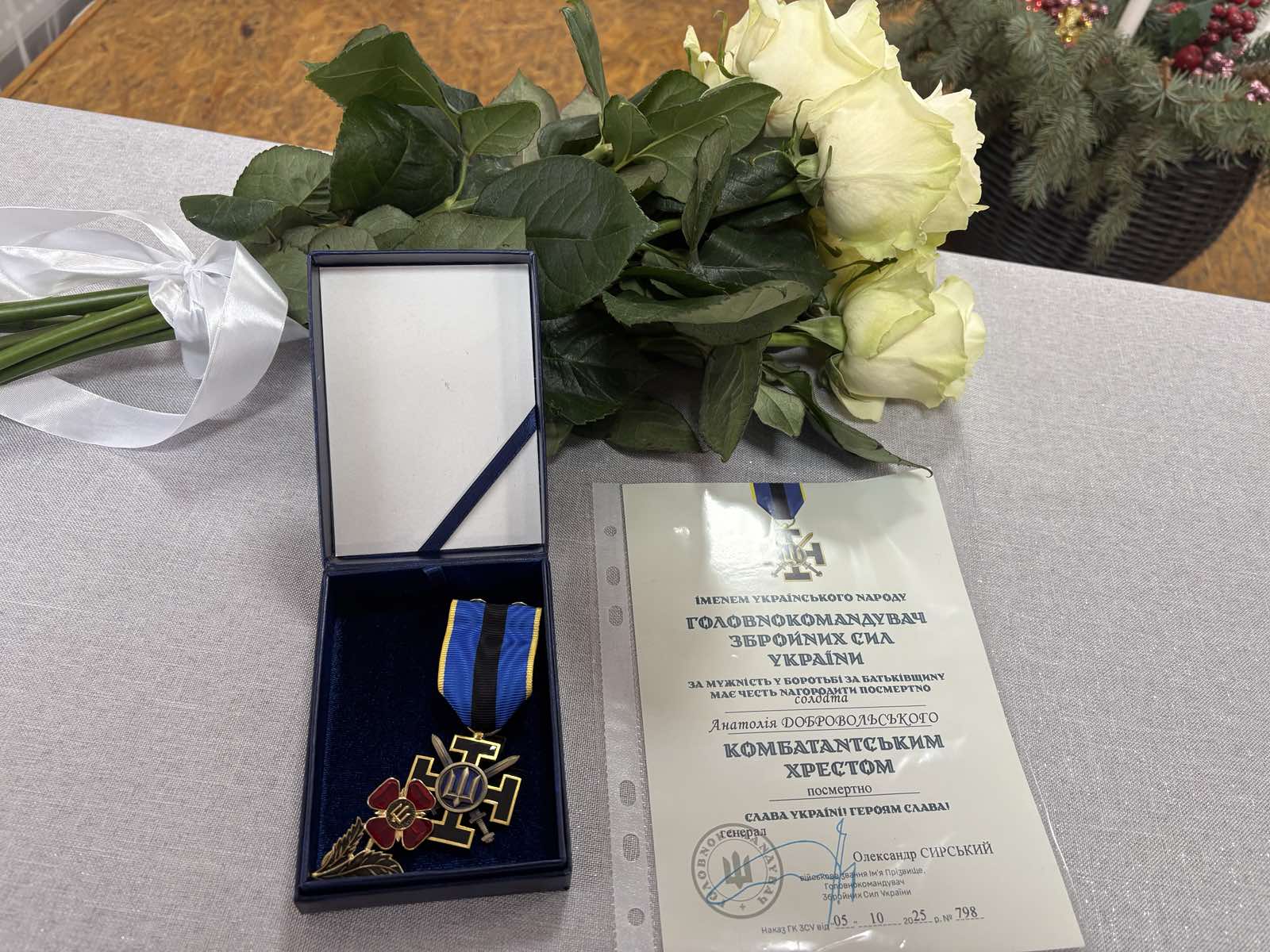 Сім’ї загиблого військовослужбовця Анатолія Добровольського було вручено високу державну нагороду – Комбатанський Хрест, яким іменем Українського народу Головнокомандувач Збройних Сил України посмертно нагородив солдата за мужність, відвагу та самопожертву у боротьбі за свободу і незалежність нашої Держави.