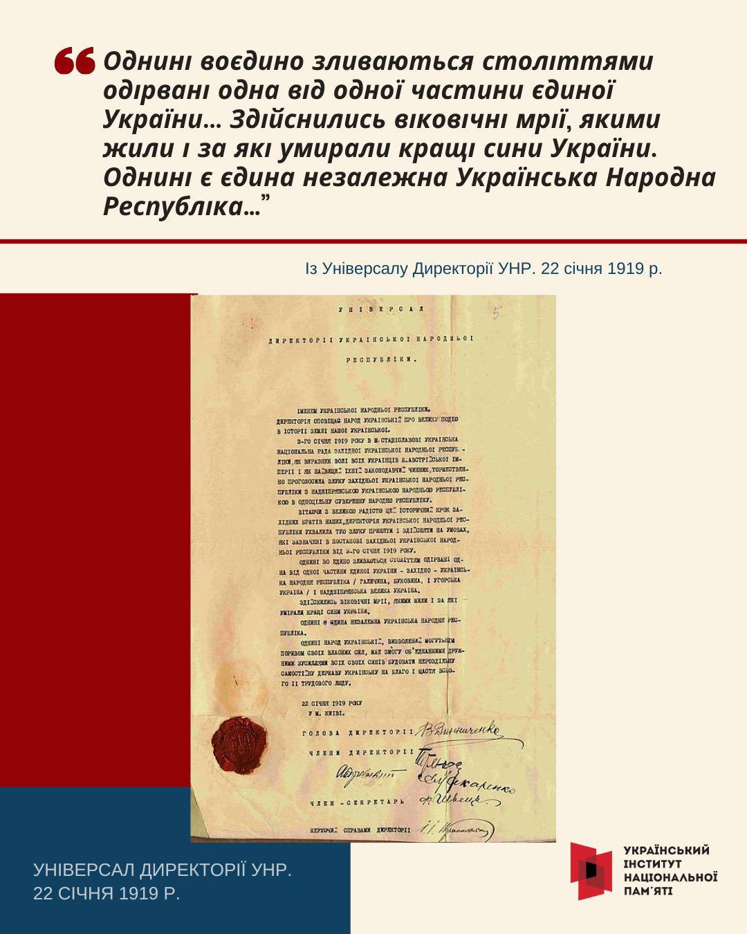 До Дня Соборності Український інститут національної памʼяті публікує серію цитат і візуальних матеріалів, що нагадують перевірену тисячоліттями істину: