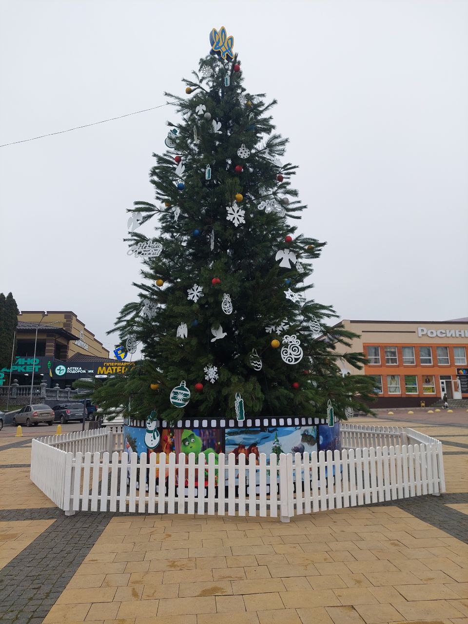 Зелена красуня, встановлена на центральній площі нашого Богуслава, вже приваблює до себе малечу своєю ошатністю, незвичною новорічною зіркою у вигляді патріотичного тризуба та осучасненою огорожею, на якій оживають персонажі із відомих мультфільмів.