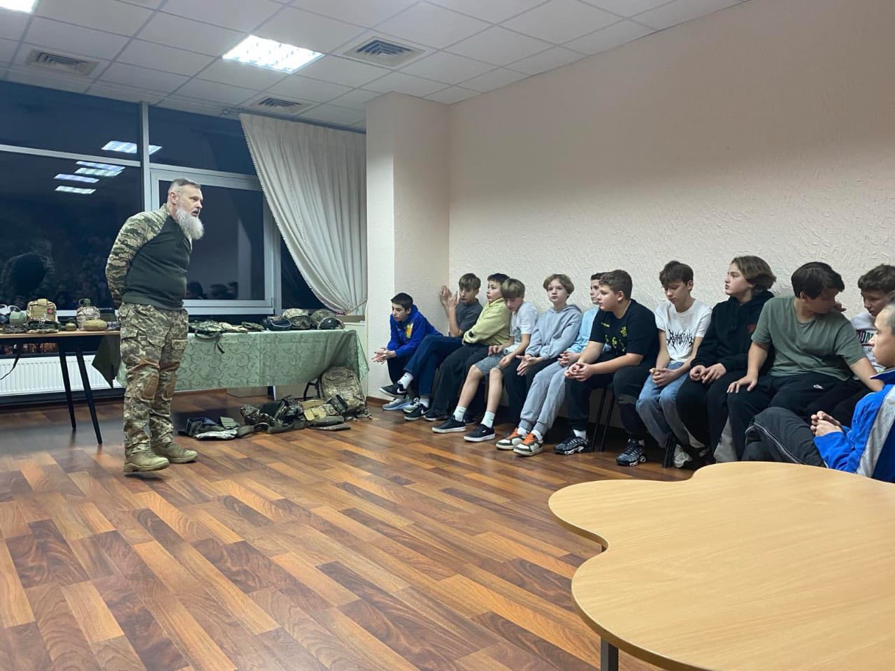 В Кабінеті Підтримки ветеранів та членів їх родин КУ «Центр надання соціальних послуг» систематично проходять заняття з військово-патріотичного виховання, які проводить ветеран війни Вʼячеслав Гончар для дітей віком від 12 років.