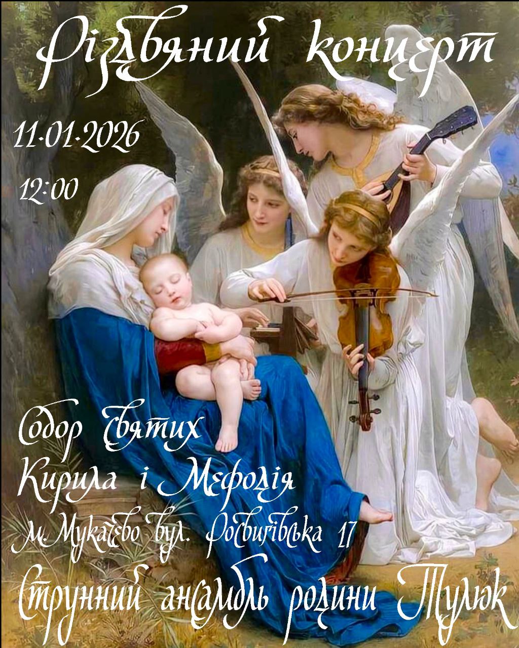 З радістю запрошуємо вас на Різдвяний концерт родини Тулюк, який відбудеться 11 січня о 12:00 у Соборі Святих Кирила і Мефодія.