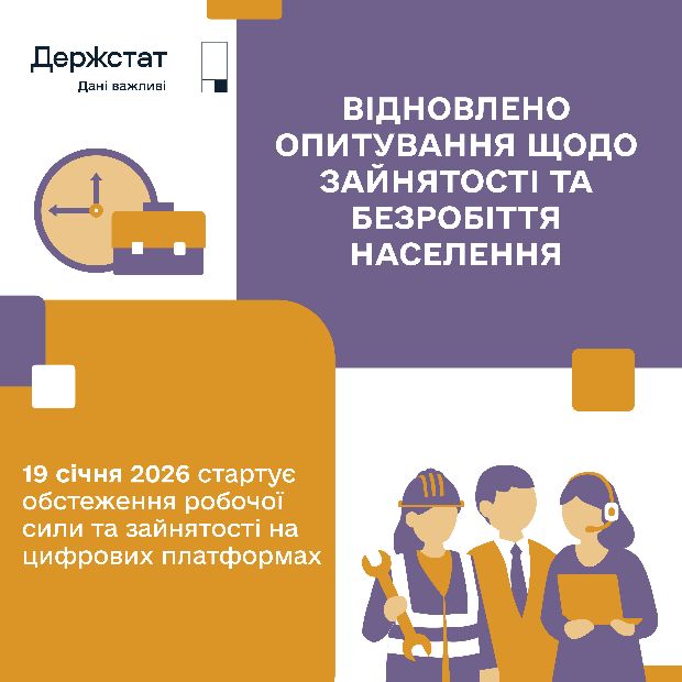ℹ️ Головне управління статистики у Чернігівській області інформує, що з 19 січня 2026 року в Україні розпочинається обстеження робочої сили – вибіркове опитування населення (домогосподарств), яке проводиться на виконання Плану державних статистичних спостережень на 2026 рік і є частиною євроінтеграційних процесів України.
