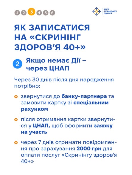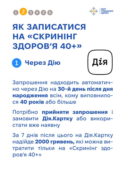 ✅ Центр громадського здоров’я пояснює, як скористатися програмою «Скринінг здоров’я 40+» — гортайте картки і зберігайте допис, аби корисні підказки завжди були під рукою ⤵️