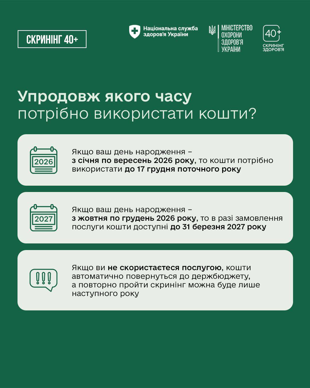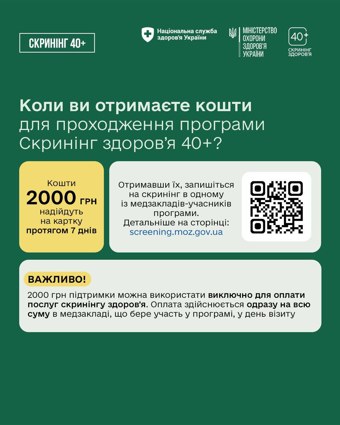 🔗Більше інформації про програму Скринінг здоров’я 40+ та відповіді на найпоширеніші запитання читайте тут: screening.moz.gov.ua .