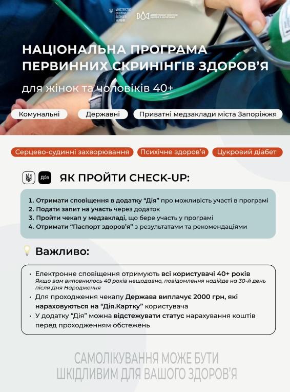 Детальну інформацію про програму Скринінг здоров’я 40+ та відповіді на найпоширеніші запитання знайдете за посиланням: