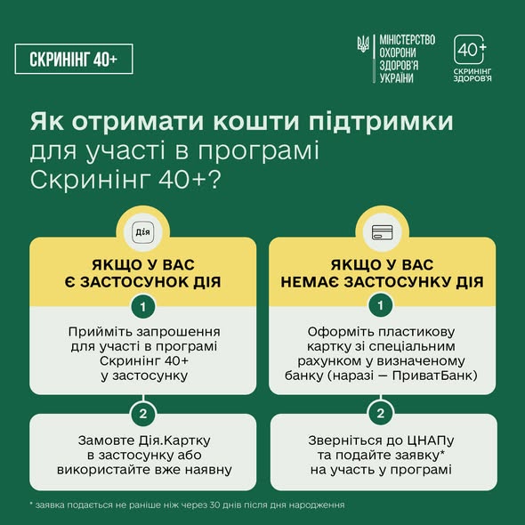 🔗Детальну інформацію про програму Скринінг здоров’я 40+ та відповіді на найпоширеніші запитання знайдете за посиланням: screening.moz.gov.ua