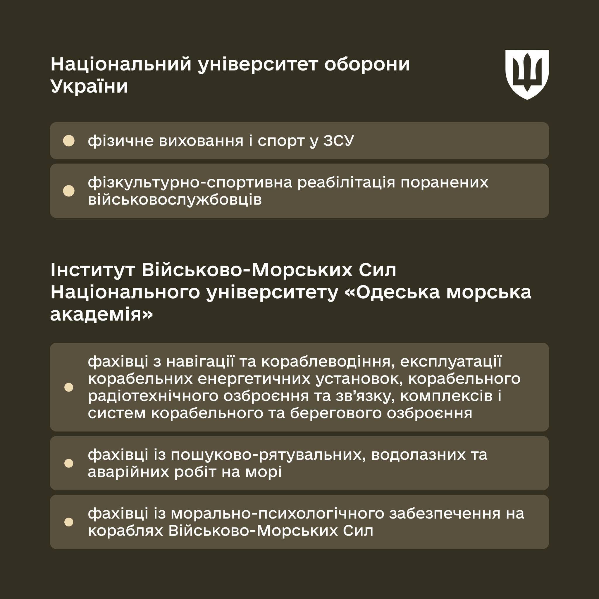 🏫 В Україні стартувала вступна кампанія до вищих військових навчальних закладів. Окрім якісної освіти, курсантам надається грошове, речове та медичне забезпечення. Також гарантується забезпечення житлом.
