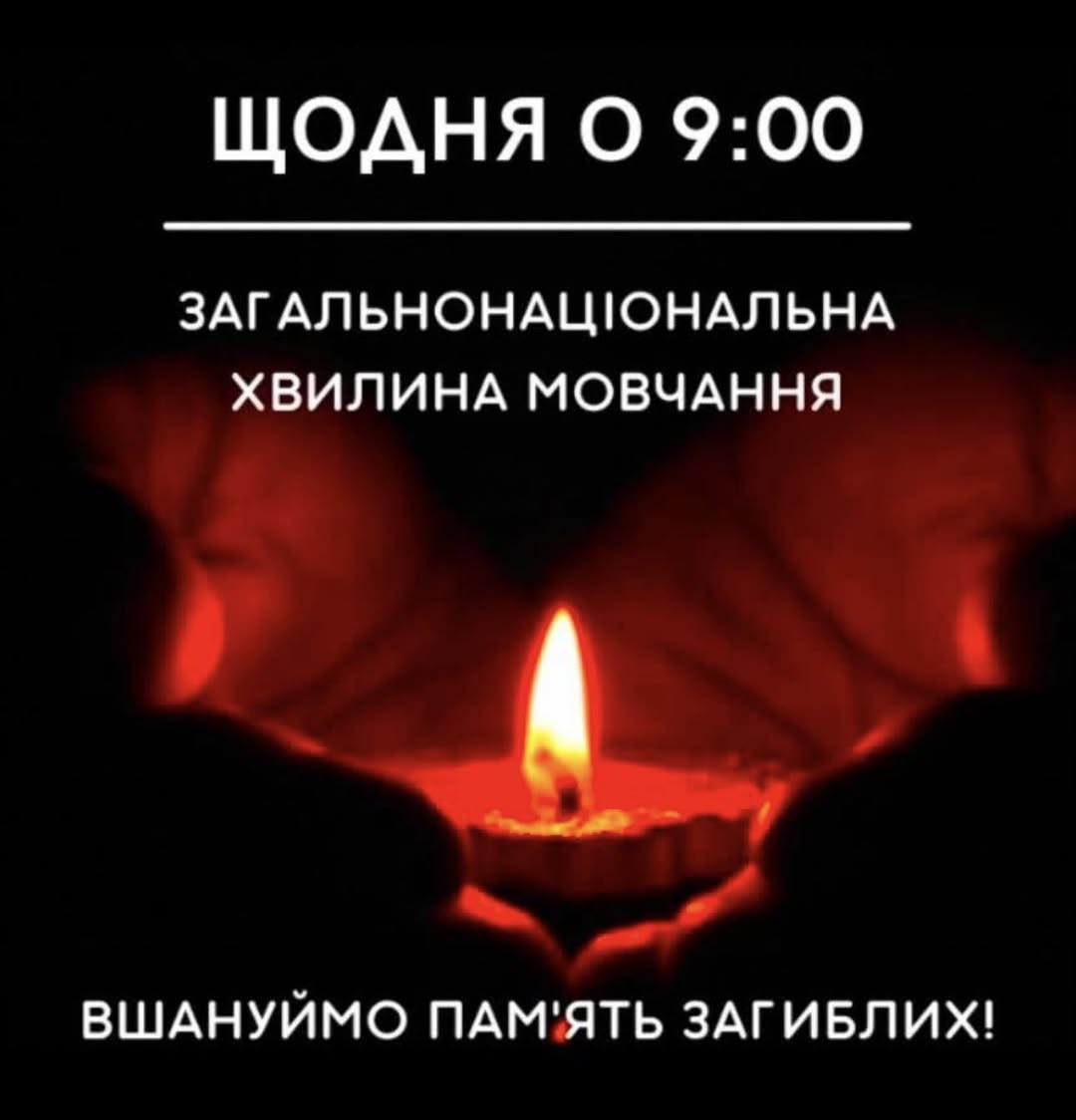 В Україні щоранку, о 9.00 год , загальнонаціональна хвилина мовчання.