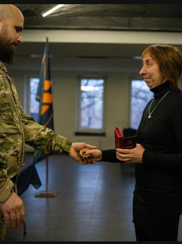 Також Світлані Григорівні було передано Нагрудний знак «Комбатантський хрест» – почесну відзнаку Головнокомандувача Збройних Сил України. Відзнака підкреслює особистий внесок військового у захист суверенітету України та його стійкість під час виконання бойових завдань.