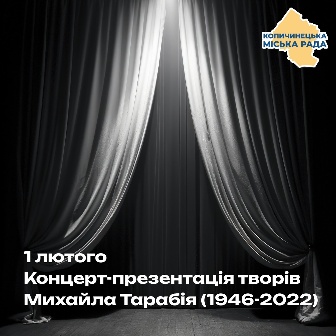 О 14:00 1 лютого в Центрі культури і дозвілля відбудеться концерт-презентація збірки вокально-хорових творів Михайла Тарабія (1946-2022), поета, педагога, колишнього міського голови міста Копичинці.