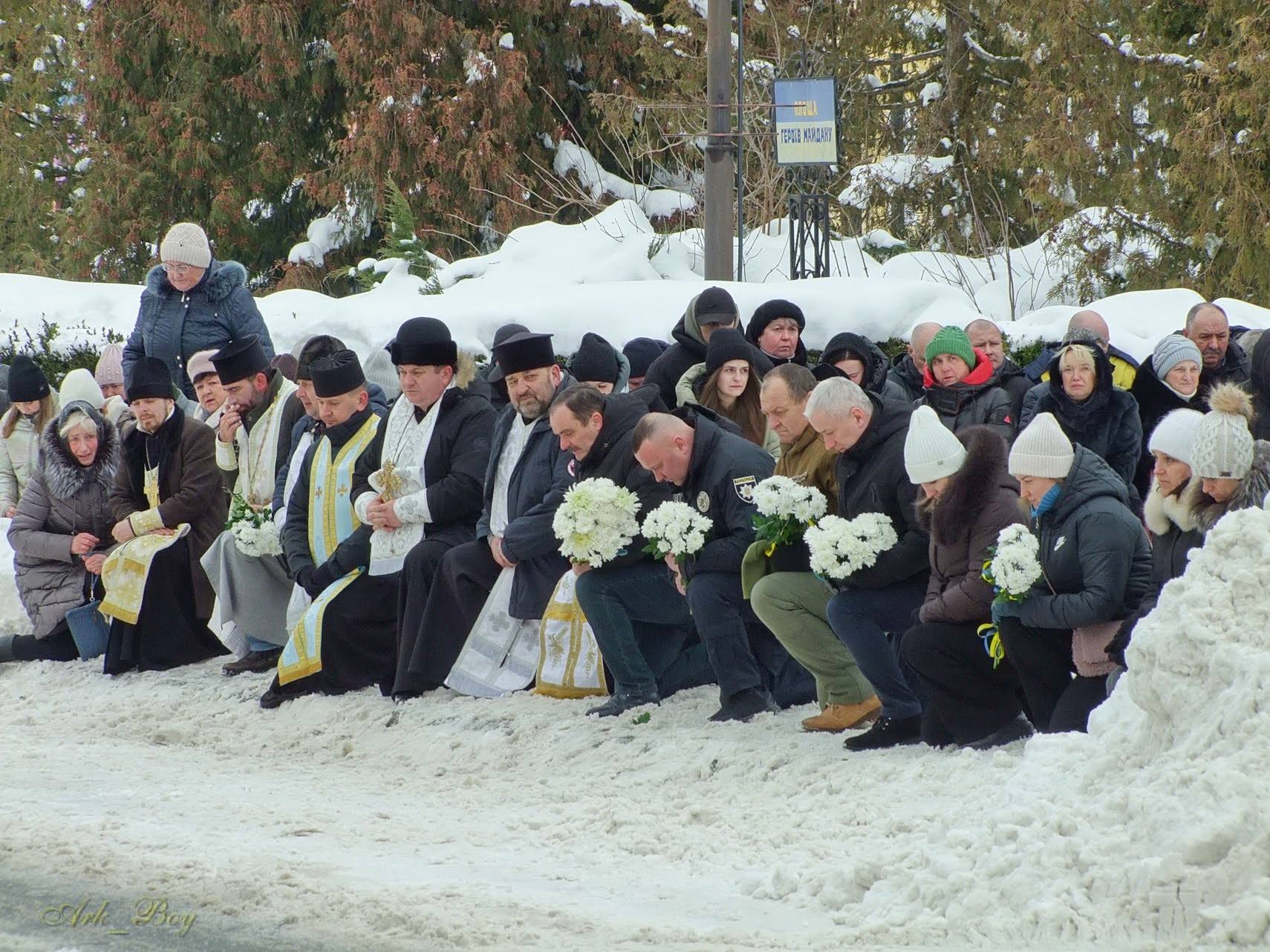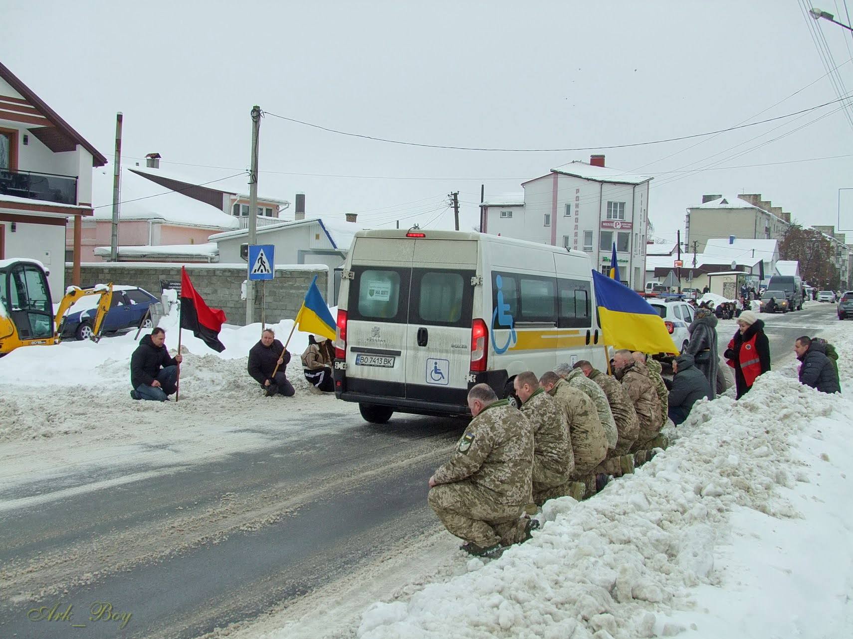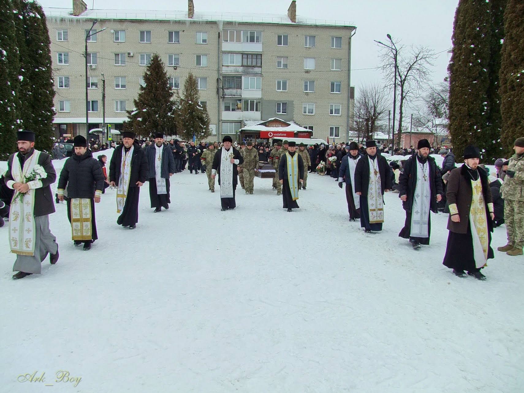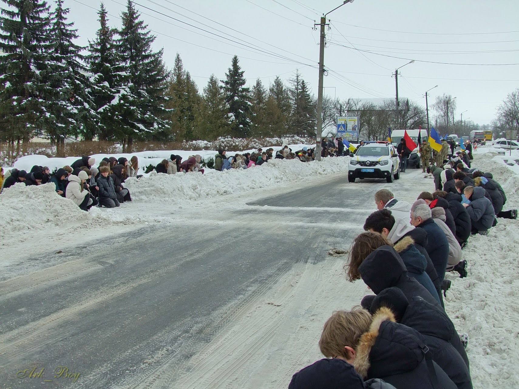 Під пронизливі звуки сирени кортежу громада зустріла живим коридором військовослужбовця, який повернувся «на щиті». На площі Героїв Майдану духівники спільно із присутніми помолилися за нашого земляка.