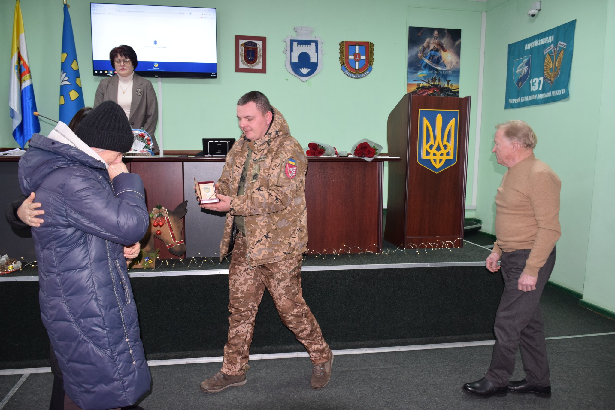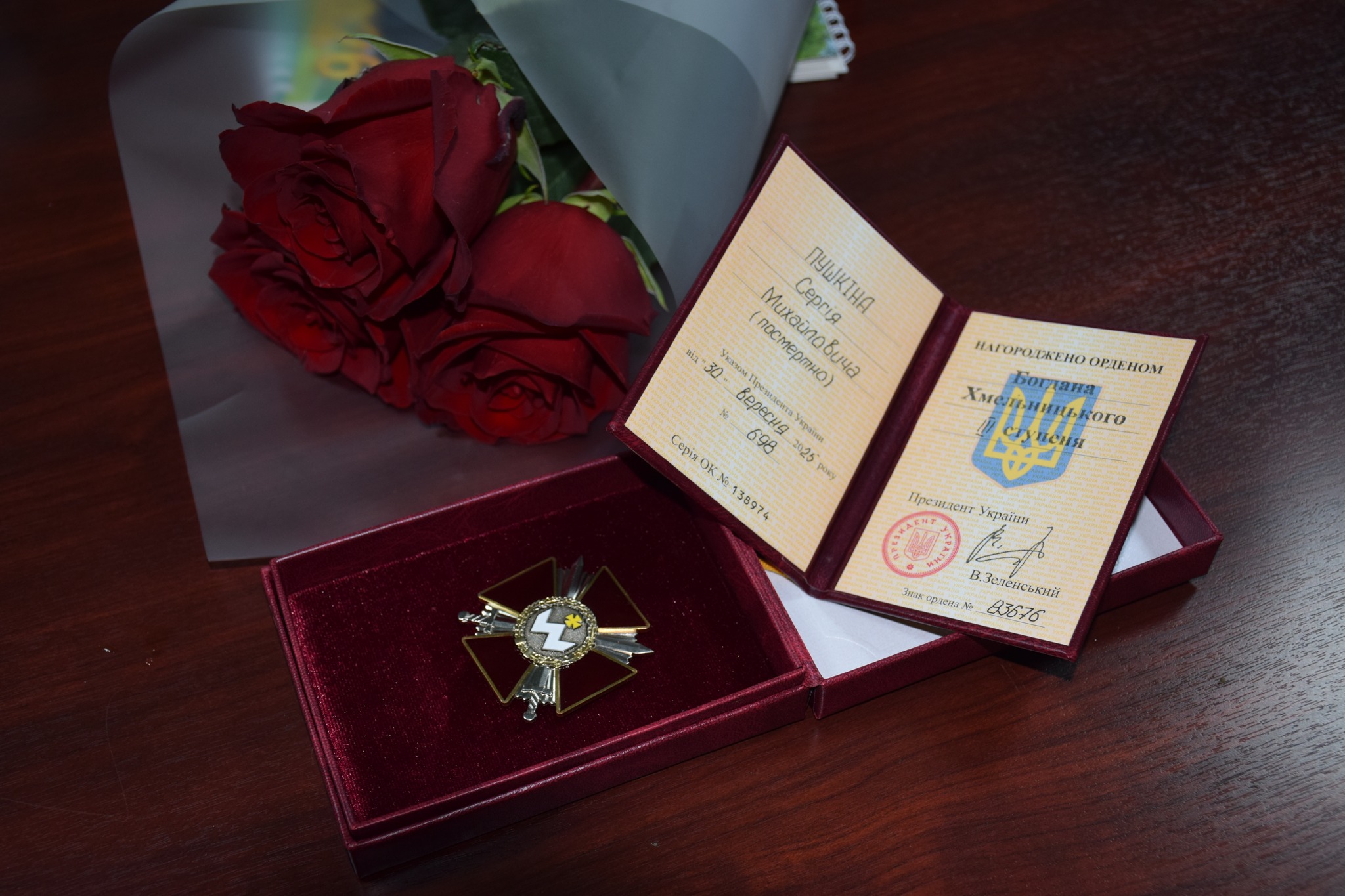 В рамках позачергової, 66-ї сесії відбулось нагородження Орденом “Богдана Хмельницького ІІІ ступеня” (посмертно) від 30 вересня 2025 року Героя Біляївської громади – загиблого військовослужбовця Пушкіна Сергія Михайловича.