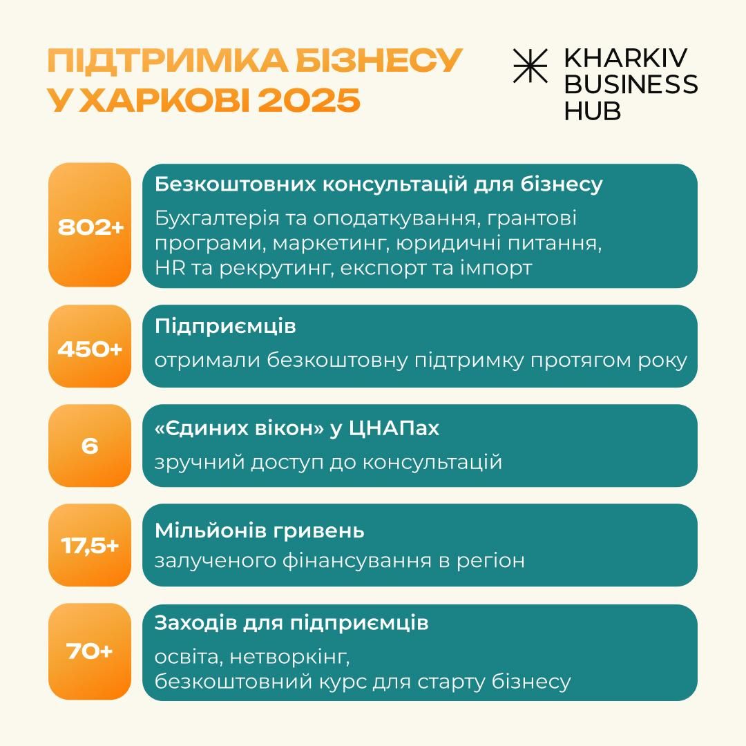 В рамках реалізації проєкту «Kharkiv Business Hub» у 2025 році підприємці Харкова та регіону отримували системну безкоштовну підтримку з основних питань ведення та розвитку бізнесу.