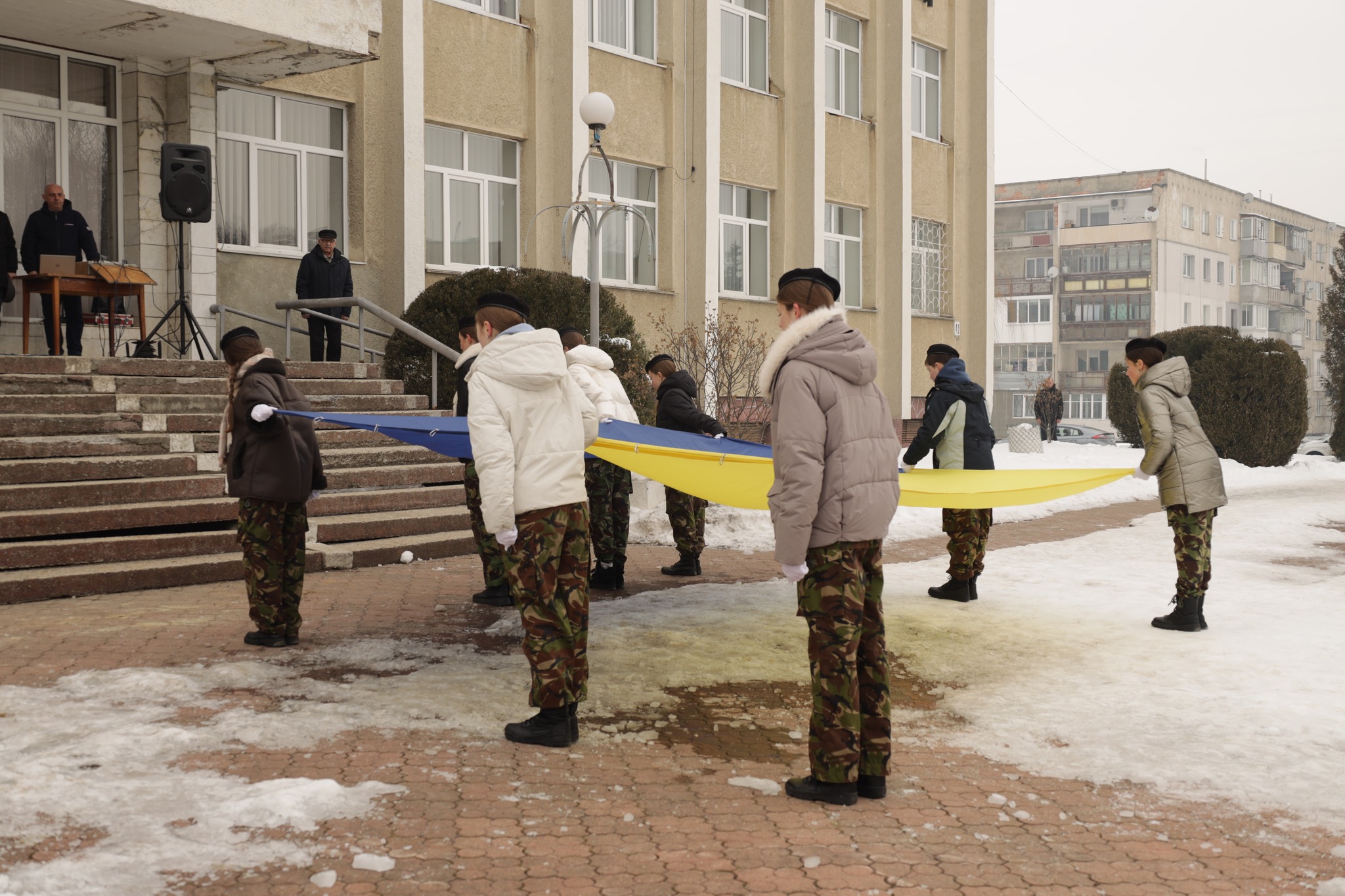 🎶 Урочистості розпочалися з внесення Державного Прапора України вихованцями військово-патріотичного гуртка «Джура» та спільного виконання Гімну. Присутні схилили голови у хвилині мовчання, вшановуючи пам’ять усіх Героїв, які в різні епохи віддали життя за соборність та незалежність нашої держави.