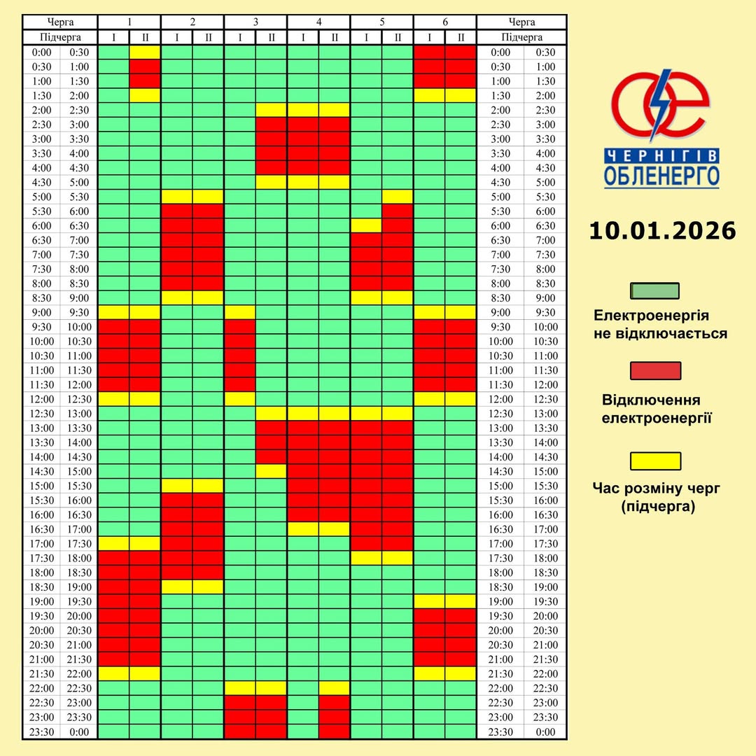 За командою НЕК “Укренерго”, 10 січня діятиме Графік погодинних відключень (ГПВ) ☝️.