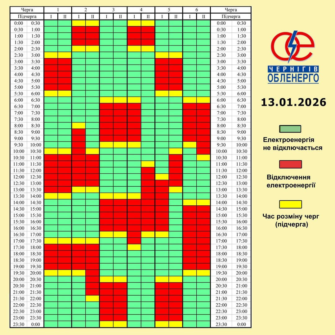 За командою НЕК “Укренерго”, 13 січня діятиме Графік погодинних відключень (ГПВ) ☝️.