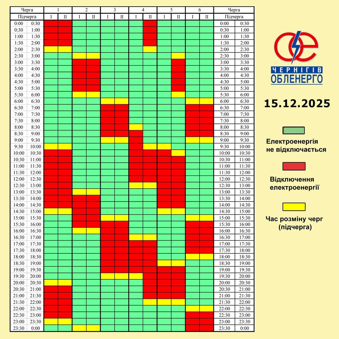 За командою НЕК “Укренерго”, 15 грудня діятиме такий Графік погодинних відключень (ГПВ) ☝️.