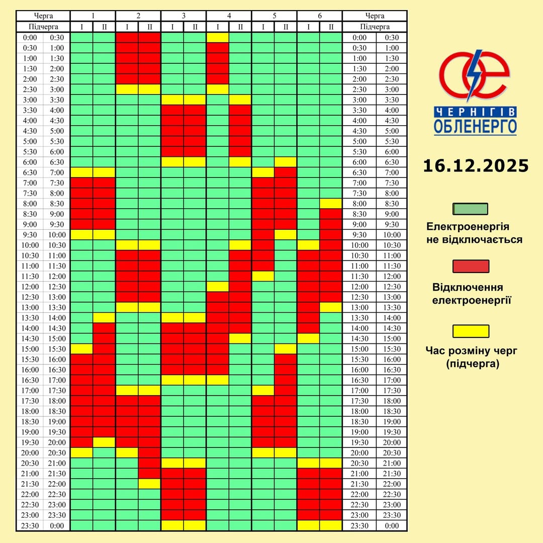 За командою НЕК “Укренерго”, 16 грудня діятиме такий Графік погодинних відключень (ГПВ) ☝️.
