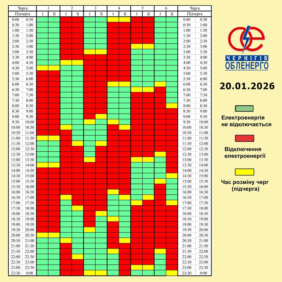 За командою НЕК “Укренерго”, 20 січня діятиме Графік погодинних відключень (ГПВ) ☝️.