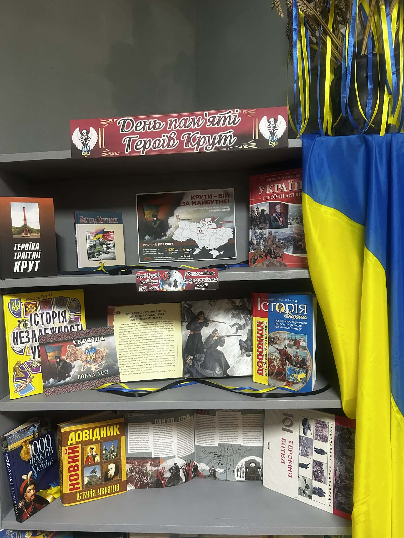 Також познайомились з виставкою-реквіємом «День пам’яті Героїв Крут» та вшанували пам’ять загиблих юнаків хвилиною мовчання.
