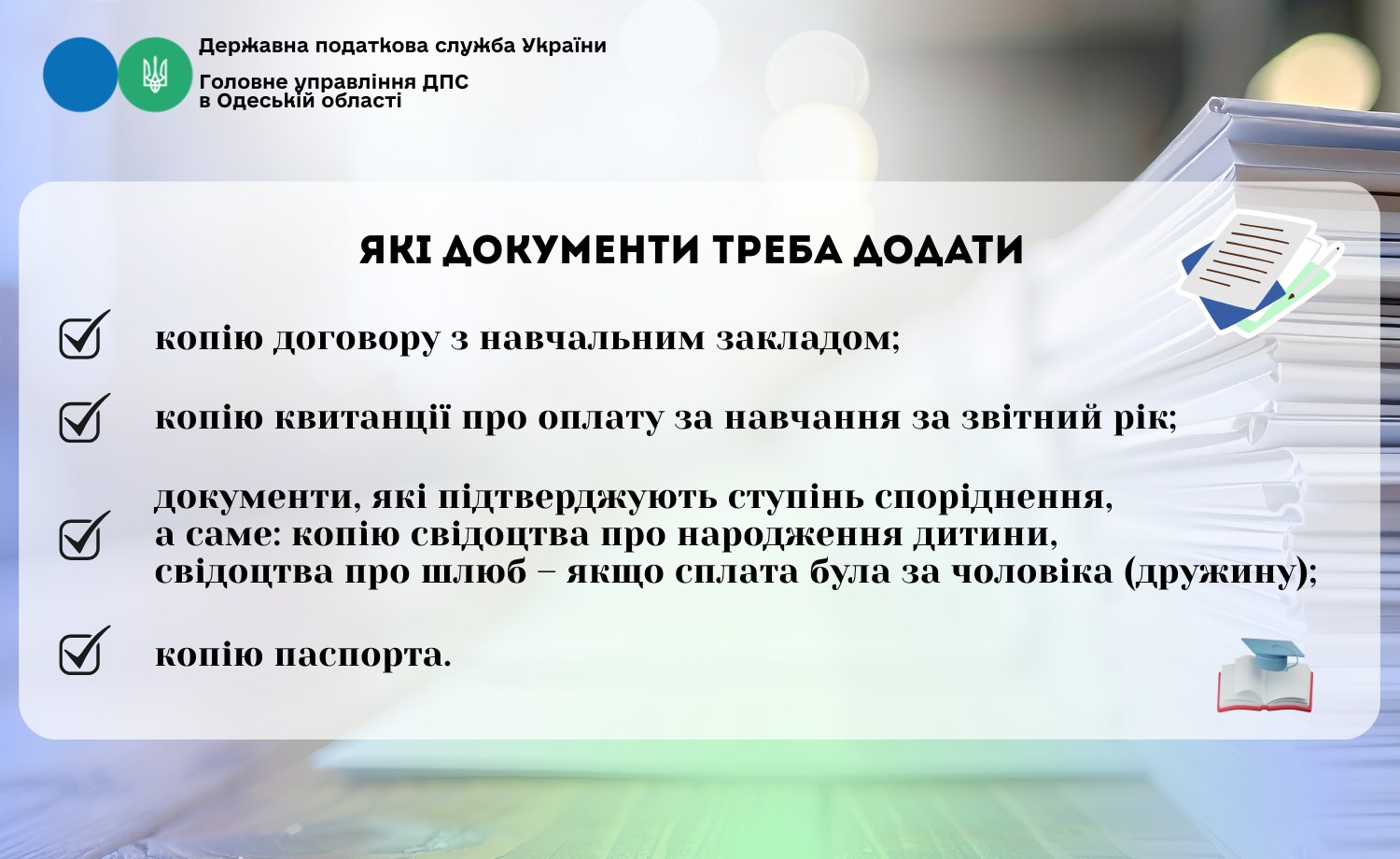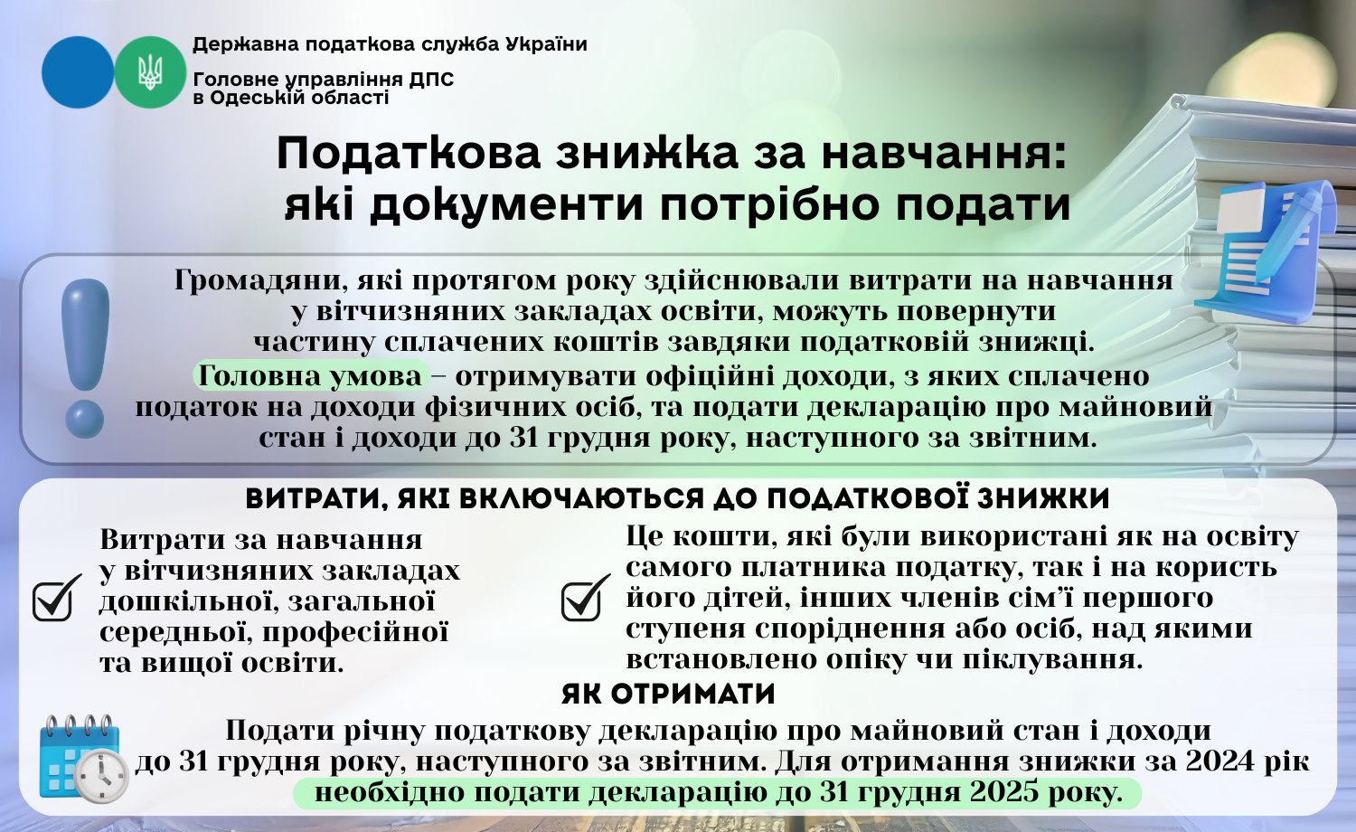 Податкова знижка за навчання: які документи потрібно подати