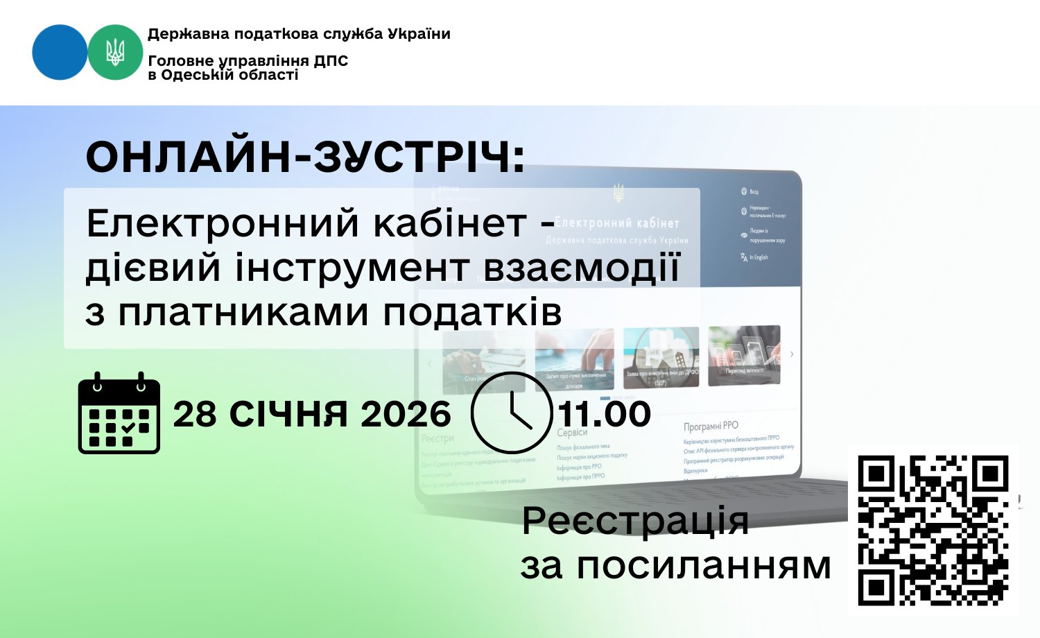 Головне управління ДПС в Одеській області запрошує платників податків регіону взяти участь в онлайн-зустрічі щодо функціональних можливостей Електронного кабінету як інструменту взаємодії з платниками податків.