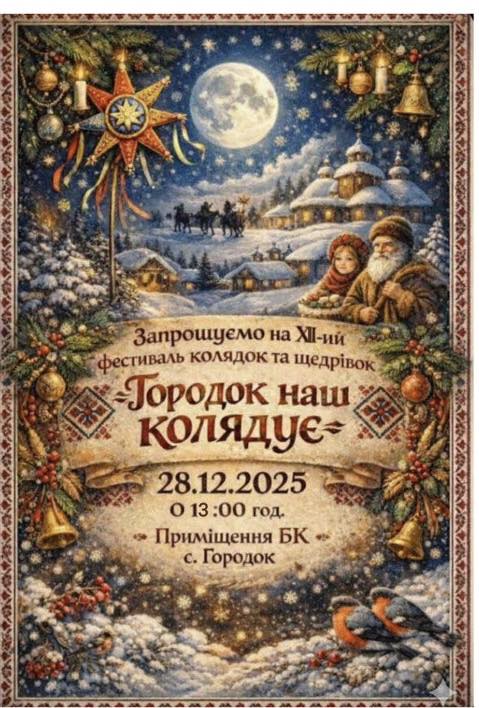 Уже цієї неділі, 28 грудня 2025 року, у селі Городок відбудеться XII-ий щорічний фестиваль колядок та щедрівок «Городок наш колядує».