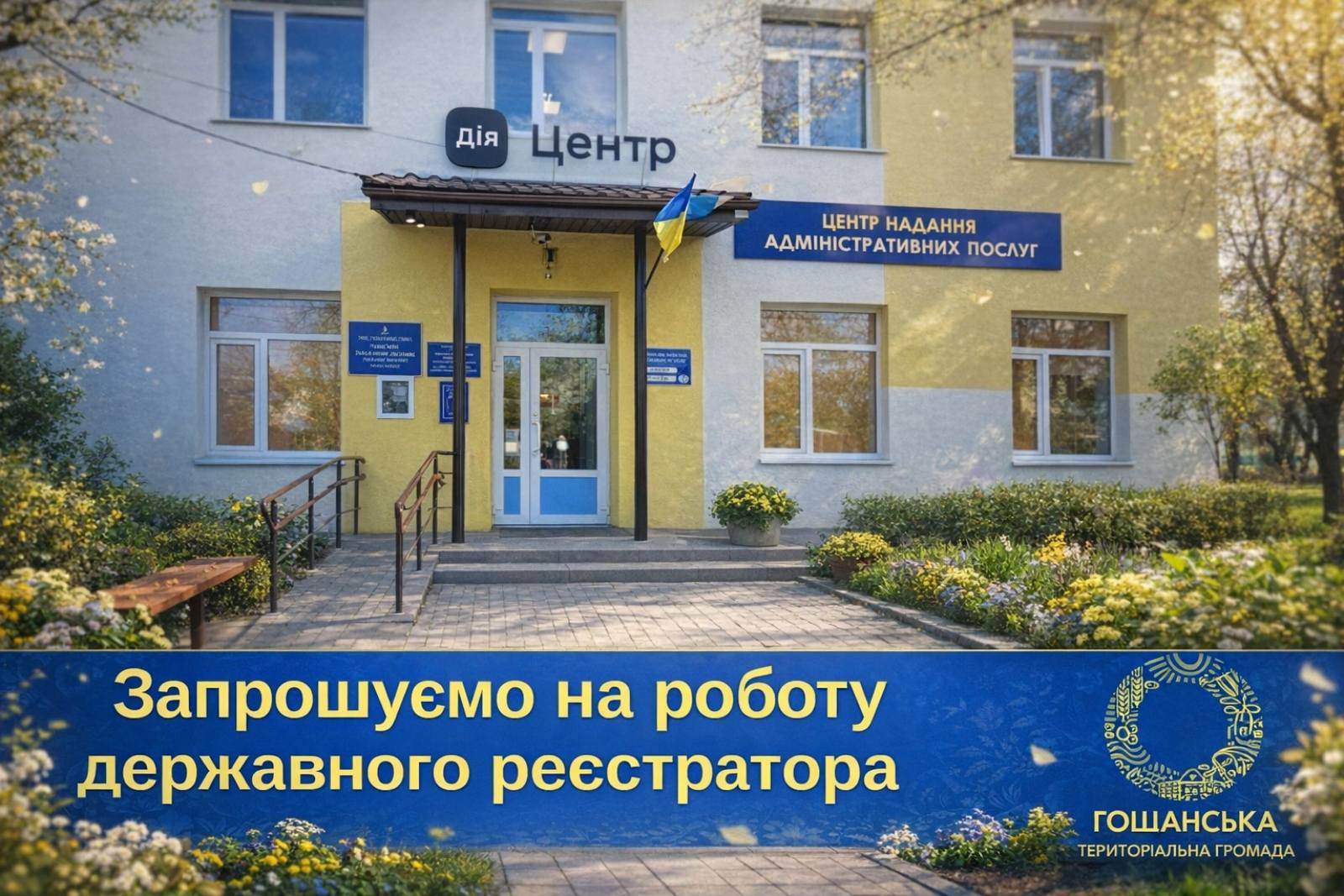 Гощанська селищна рада запрошує до команди державного реєстратора Центру надання…