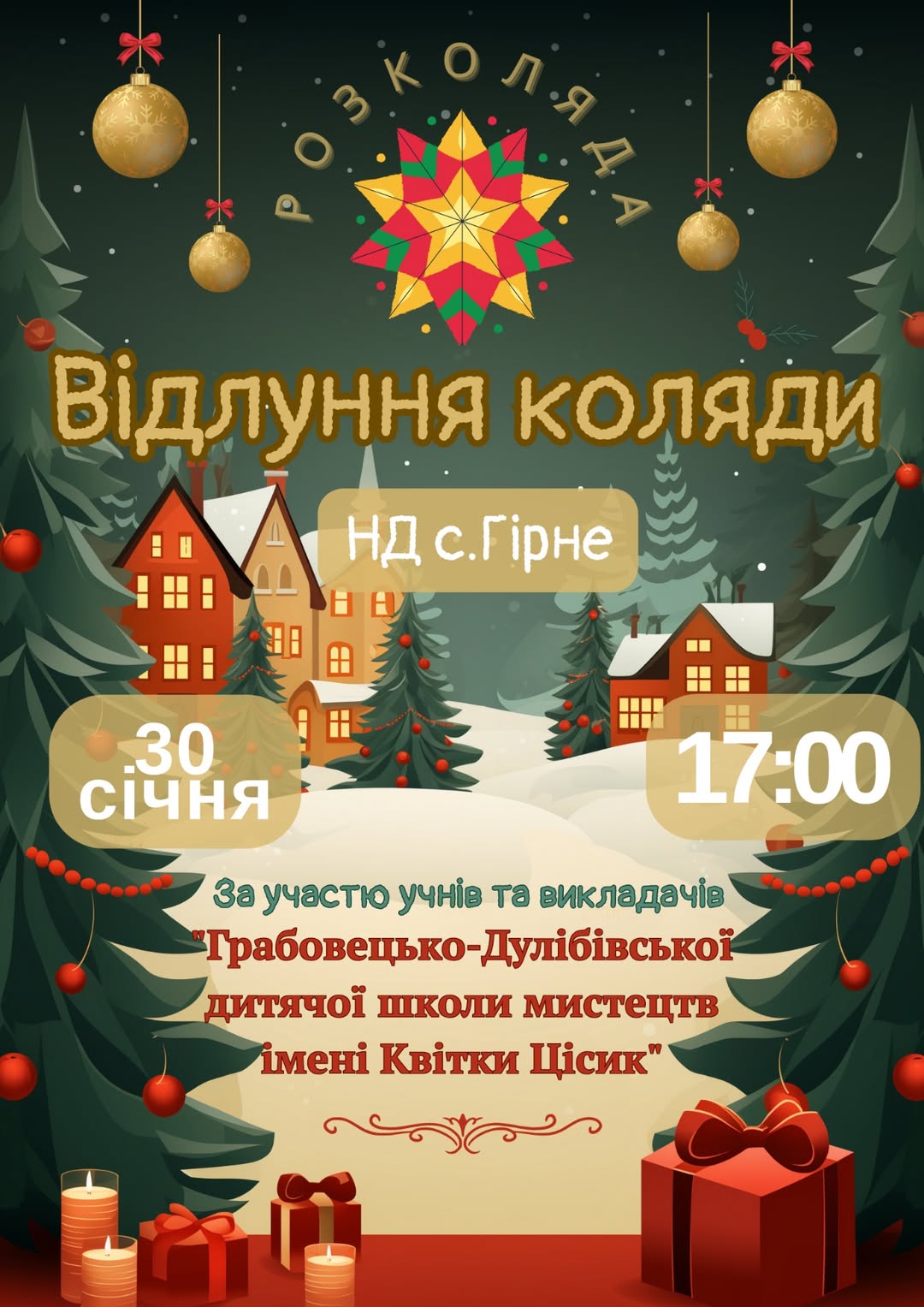 Грабовецько-Дулібівська дитяча школа мистецтв ім.Квітки Цісик запрошує на завершальний різдвяний концерт!