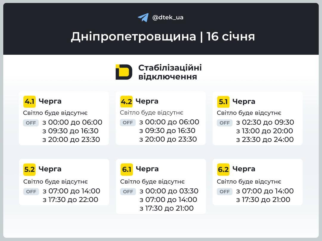 Графіки відключення світла на 16 січня