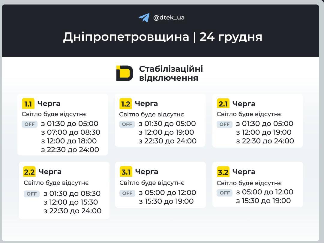 За командою Укренерго ДТЕК ввів графіки стабілізаційних відключень електроенергії по місту Самар та всій Дніпропетровській області.
