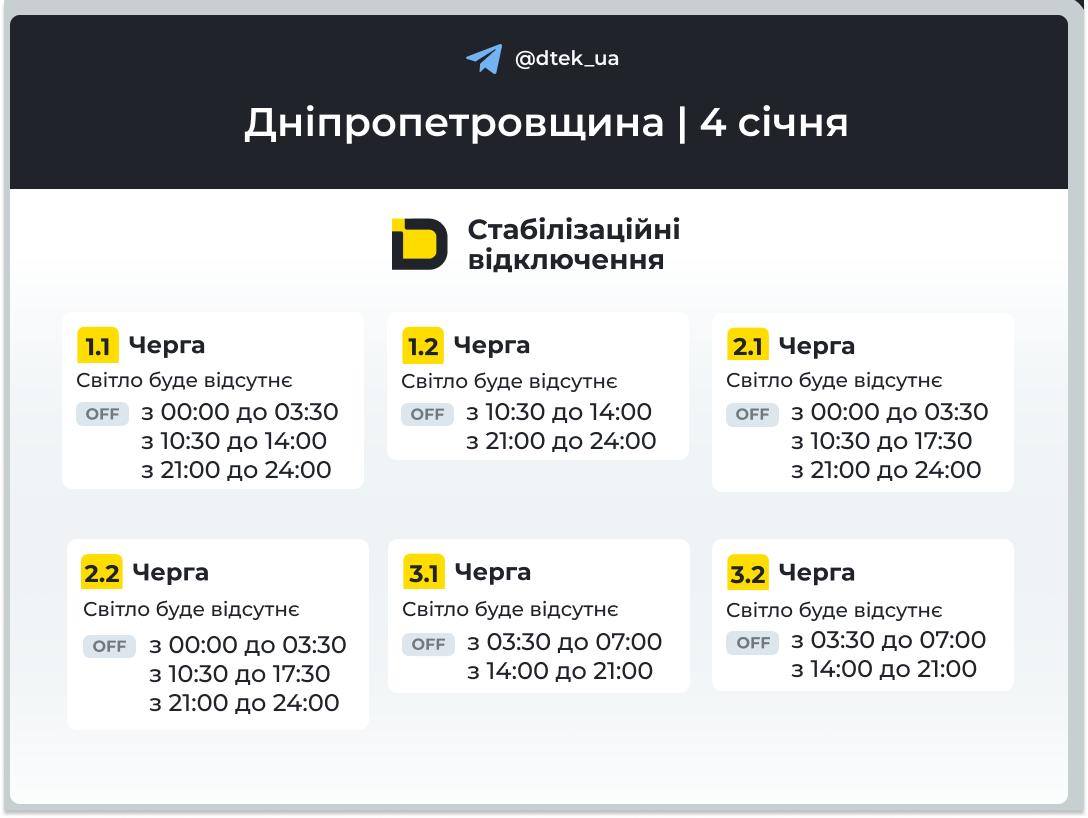 За командою Укренерго ДТЕК ввів графіки стабілізаційних відключень електроенергії по місту Самар та всій Дніпропетровській області.